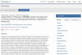 Ristya Arinta Safitri, mahasiswa Program Doktor Prodi Arsitektur DTAP FT UGM, mempublikasikan karya ilmiahnya yang berjudul “Adaptability of Siheyuan (四合院) spatial arrangement in Chinese houses in Kampung Ketandan, Yogyakarta, Indonesia” pada jurnal bereputasi internasional Built Heritage yang terindeks Scopus. Karya ilmiah tersebut merupakan hasil penelitian Disertasi Ristya bersama Prof. Ir. Tarcicius Yoyok Wahyu Subroto, M.Eng., Ph.D., IPU. selaku Promotor dan Dr. Ir. Dwita Hadi Rahmi, M.A. selaku Ko-Promotor.